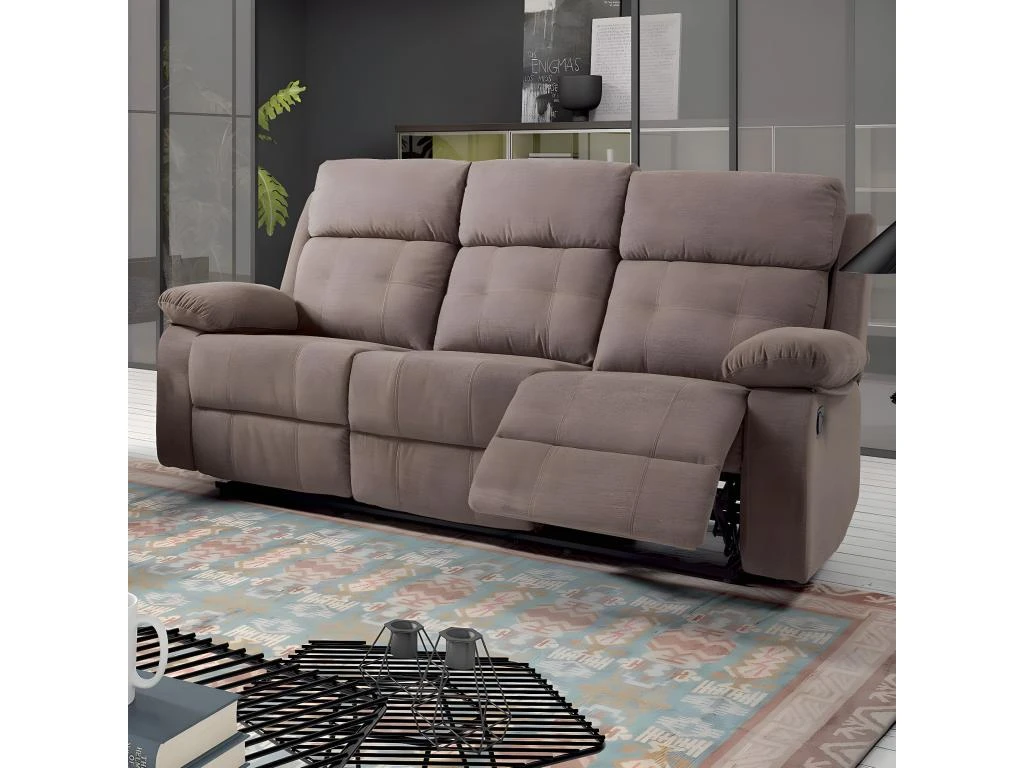 Canapé Relax Manuel 3 Places Tissu Marron Azuaga.