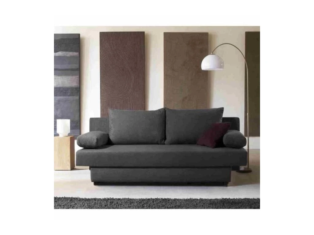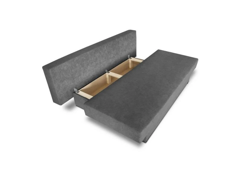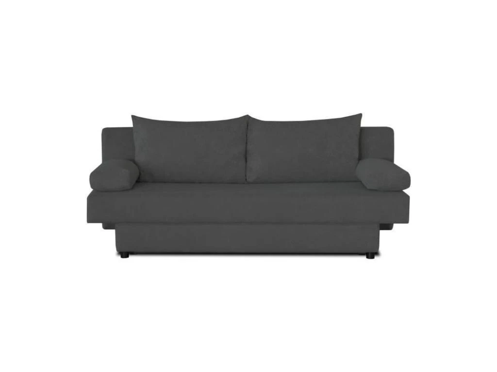 Banquette convertible PYRY 3 places – Style et design classique – Pin massif, panneaux particules et MDF – Tissu 100% polyester – Mousse polyuréthane 30kg/m3 – Couchage 120x187cm – Coffre de rangement 135x45x21 cm – Ressorts type Bonnel – Banquette L 187 x P 88 x H 85 cm – Hauteur assise 38 cm – Fabrication européenne.