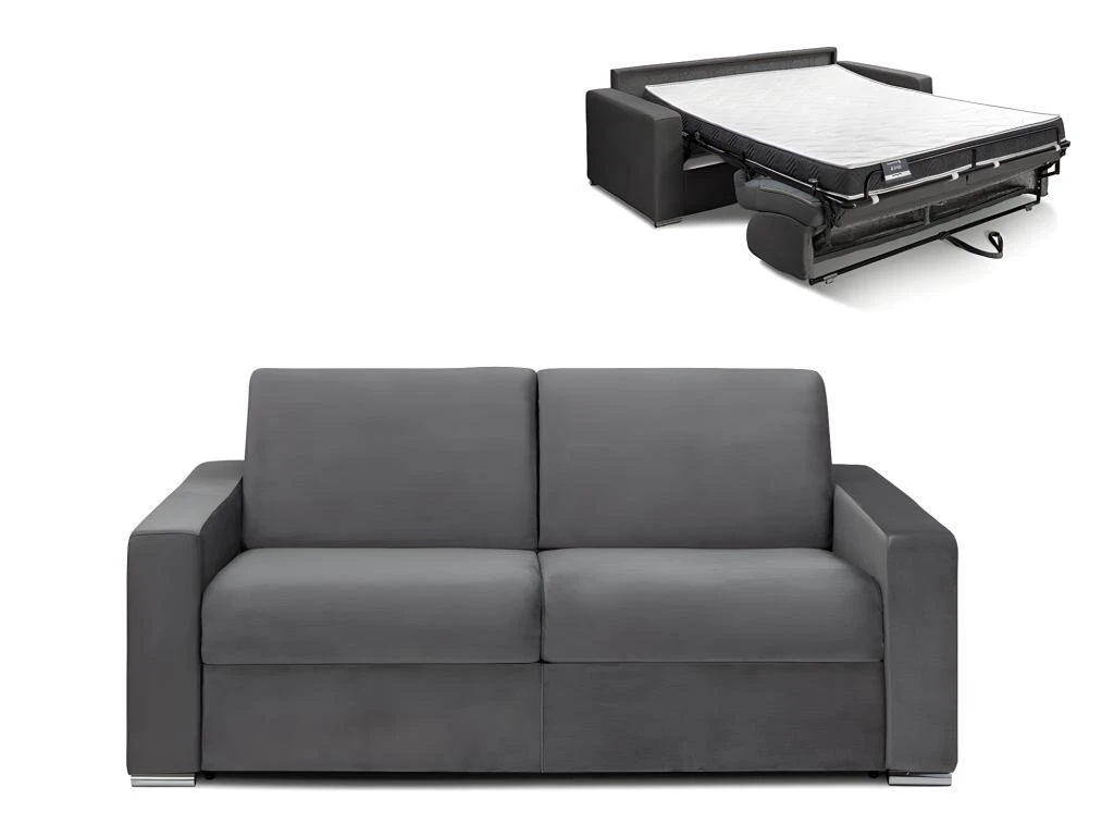 Vous souhaitez ajouter une touche d’élégance et de raffinement à votre intérieur ? Optez pour le canapé convertible en velours CALITO, confortable et esthétique qui saura sublimer votre intérieur. Le revêtement en velours confère au canapé une sensation de douceur et de luxe. Idéal pour accueillir des invités de manière spontanée ou pour créer un espace de repos supplémentaire en quelques instants, vous pourrez transformer ce canapé en lit en un clin d’œil. Les accoudoirs larges et moelleux ajoutent une dimension de confort supplémentaire à votre expérience de détente. Disponible en plusieurs largeurs pour s’adapter parfaitement à la taille de votre salon, ce canapé est également proposé avec différentes épaisseurs de matelas pour répondre à vos préférences en termes de fermeté.