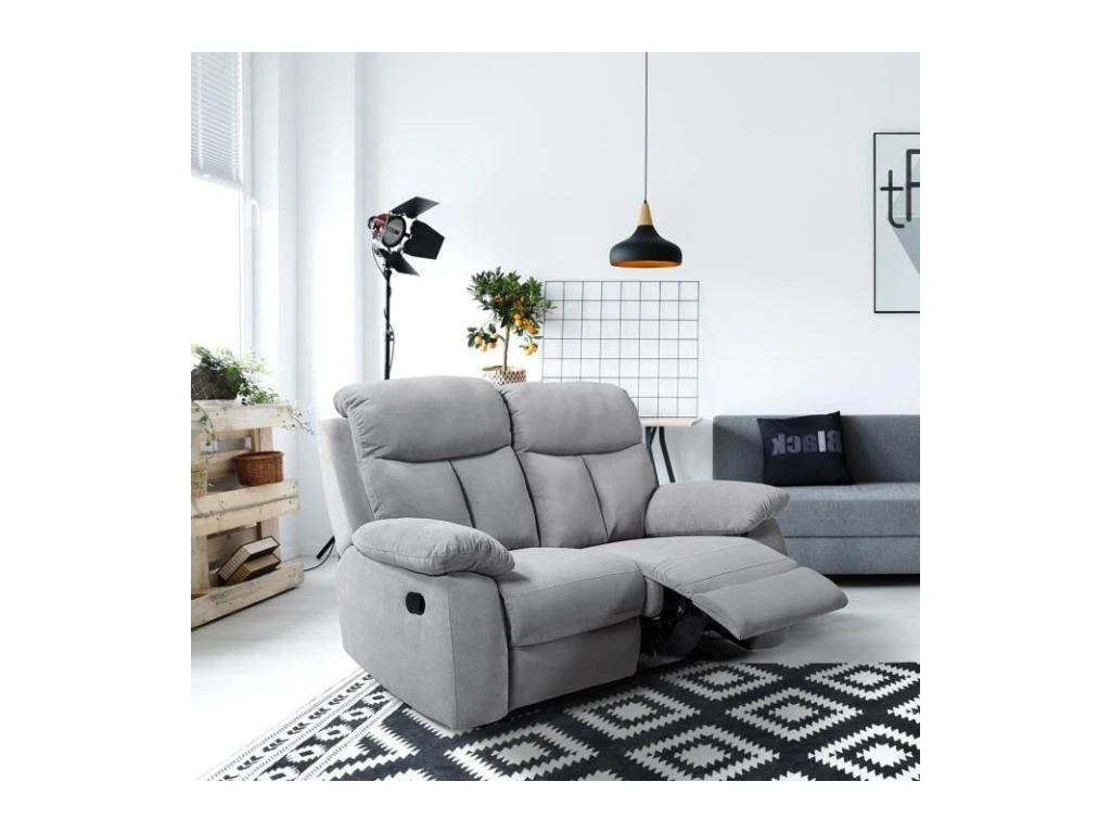 Canapé 3 Places Relax électrique En Velours Cotelé Gris Clair AMELIO