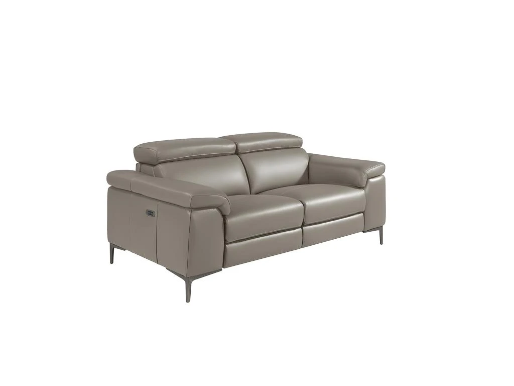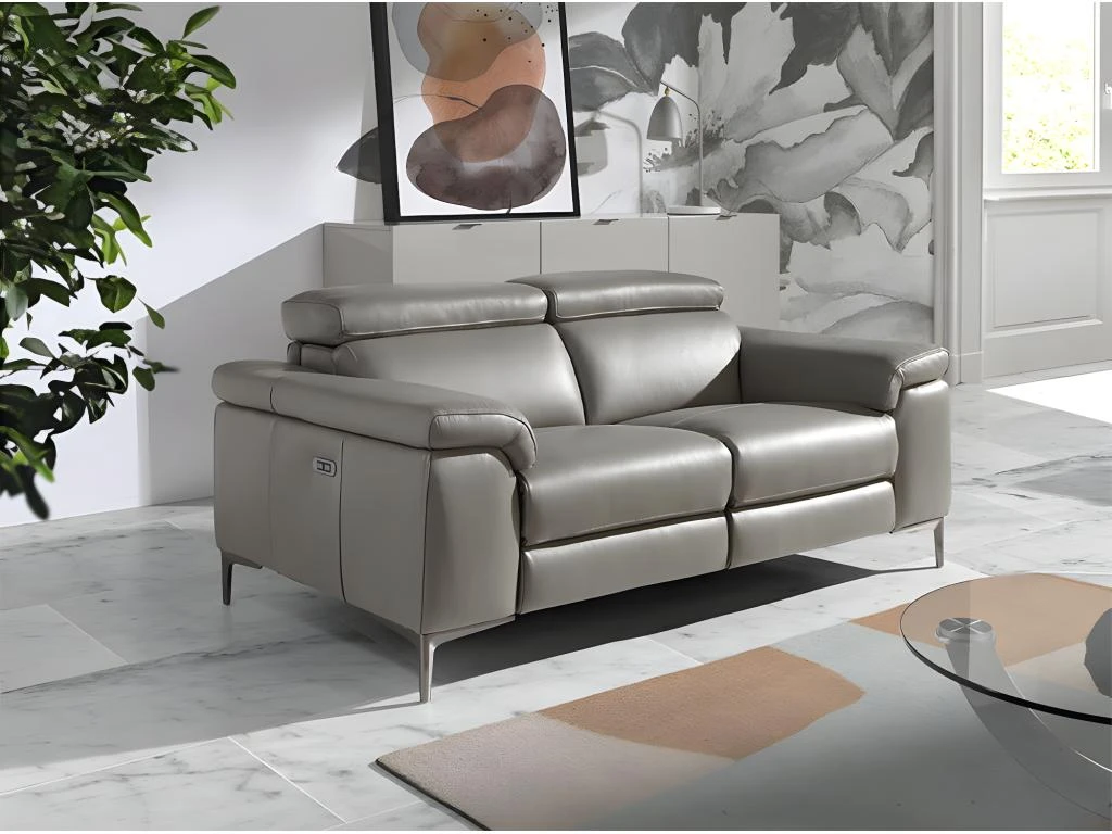 Canapé 2 places de design moderne tapissé en cuir de vachette de 1mm d’épaisseur de couleur gris foncé avec mécanismes de relaxation électriques et appuis-tête indépendants réglables. Un canapé de style minimaliste et unique, avec une structure interne robuste en bois de pin naturel et des pieds en acier inoxydable foncé qui lui donnent cette touche de tendance et d’élégance que vous recherchez pour votre salon. Ses sièges avec mécanisme de relaxation électrique vous offrent le confort supplémentaire dont vous avez besoin pour profiter de votre moment de tranquillité. La combinaison parfaite de design, d’élégance et de confort