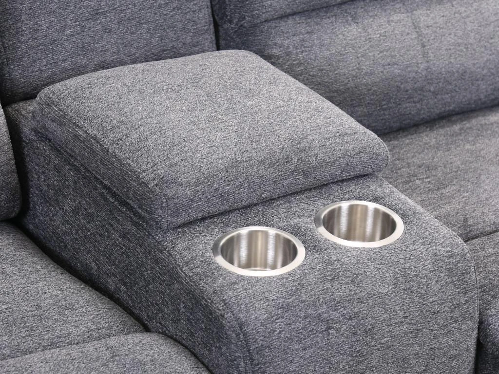 Des boutons sur le côté des accoudoirs vous permettent d’incliner le dossier, la têtière et le repose-pieds à votre convenance sans reculer le dossier, ce qui évite toute perte de place. vous pouvez donc coller le canapé à votre mur sans souci !
