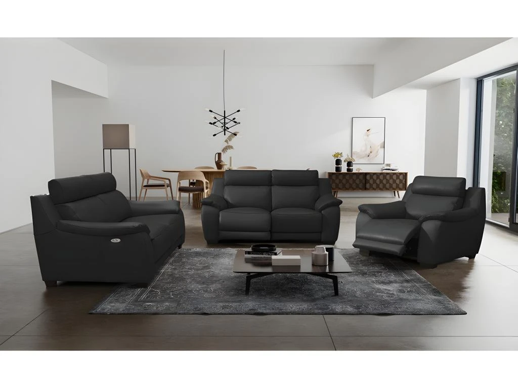 Superbe canapé taille 3 places avec 2 relax électriques en 100% tout cuir italien Prestige épais de grand luxe, cuir de vachette. Entièrement en cuir. Style raffiné et d’une grande élégance. Offre un très bon confort. Dispose de 2 relax électriques pour se relaxer et se détendre. Entièrement en cuir. Cuir épais prestige haut de gamme. Très belle qualité de fabrication européenne. Belle qualité de finition.