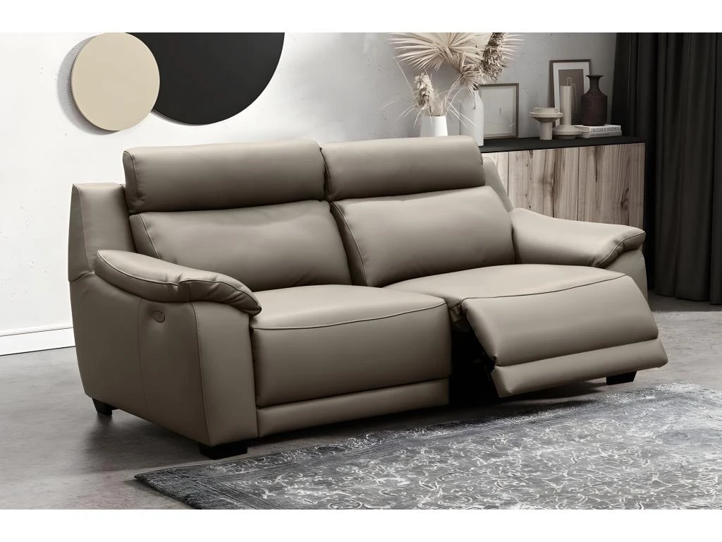 Superbe canapé taille 3 places avec 2 relax électriques en 100% tout cuir italien Prestige épais de grand luxe, cuir de vachette. Entièrement en cuir. Style raffiné et d’une grande élégance. Offre un très bon confort. Dispose de 2 relax électriques pour se relaxer et se détendre. Entièrement en cuir. Cuir épais prestige haut de gamme. Très belle qualité de fabrication européenne. Belle qualité de finition.