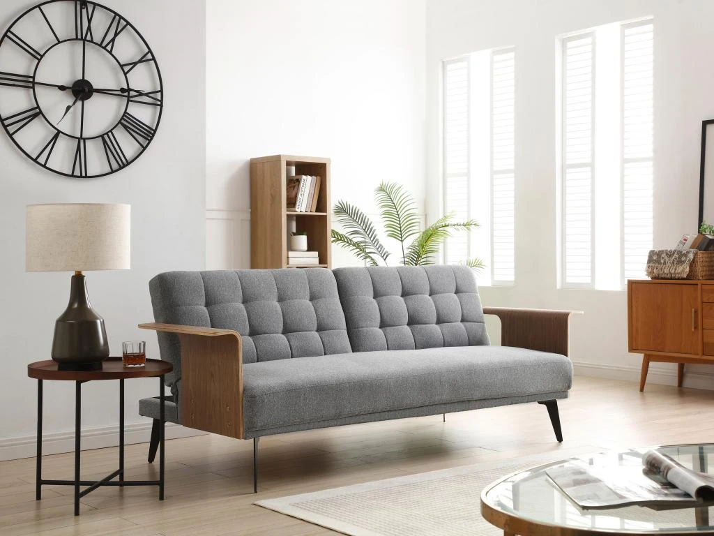 Vous recherchez un canapé doté d’un design contemporain et de fonctionnalités pratiques ? Le canapé convertible NINANDRO est fait pour vous ! En un simple geste, le canapé se transforme en un lit douillet, offrant un espace de repos supplémentaire pour les invités ou pour vous détendre. Les accoudoirs en bois au design élégant ajoutent une touche de chaleur naturelle au canapé et le contraste entre le bois et le revêtement en tissu donne une note moderne à votre intérieur.