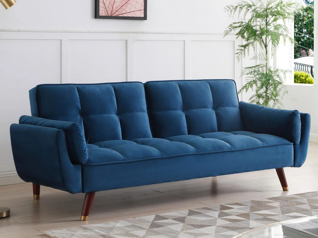 Vous recherchez un canapé au look moderne et épuré ? Optez pour le canapé convertible clic-clac GULCAN. Son revêtement en velours et ses pieds en bois apporteront une touche chaleureuse à votre intérieur. N’hésitez plus et succombez au charme et à l’élégance de ce canapé convertible.