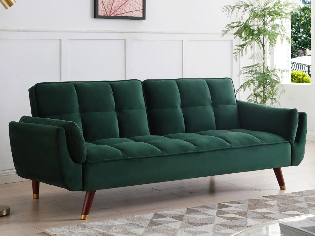 Vous recherchez un canapé au look moderne et épuré ? Optez pour le canapé convertible clic-clac GULCAN. Son revêtement en velours et ses pieds en bois apporteront une touche chaleureuse à votre intérieur. N’hésitez plus et succombez au charme et à l’élégance de ce canapé convertible.