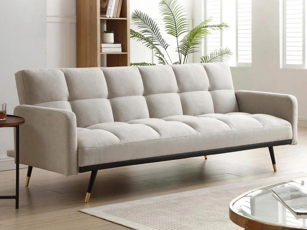 Vous recherchez un canapé aux détails raffinés ? Découvrez le canapé convertible ROREMA. Profitez de la polyvalence ultime grâce à son mécanisme clic clac et transformez facilement ce canapé en un lit confortable. Le design capitonné apporte une touche d’élégance intemporelle à ce canapé et ses pieds en métal noir et doré ajoutent une dimension moderne.