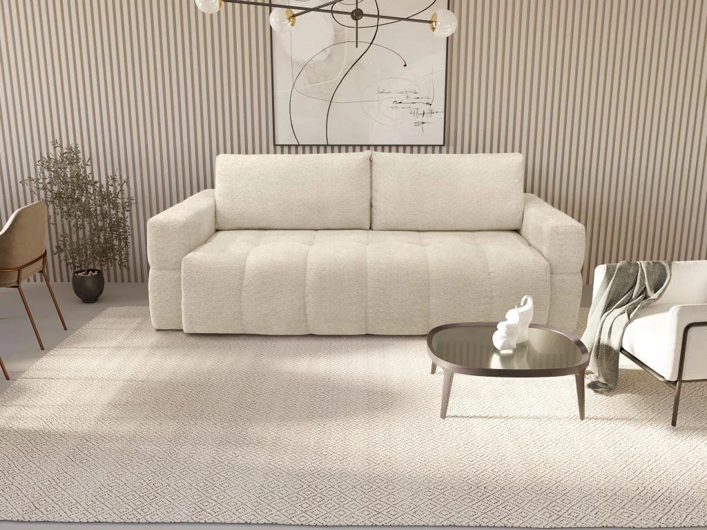 Vous avez envie d’un canapé à la fois tendance et pratique ? N’attendez plus et choisissez le canapé 3 places en tissu bouclette ISSORO ! Avec son effet matelassé et ses larges coussins d’assise, le canapé ISSORO se révélera être l’élément idéal pour votre salon.