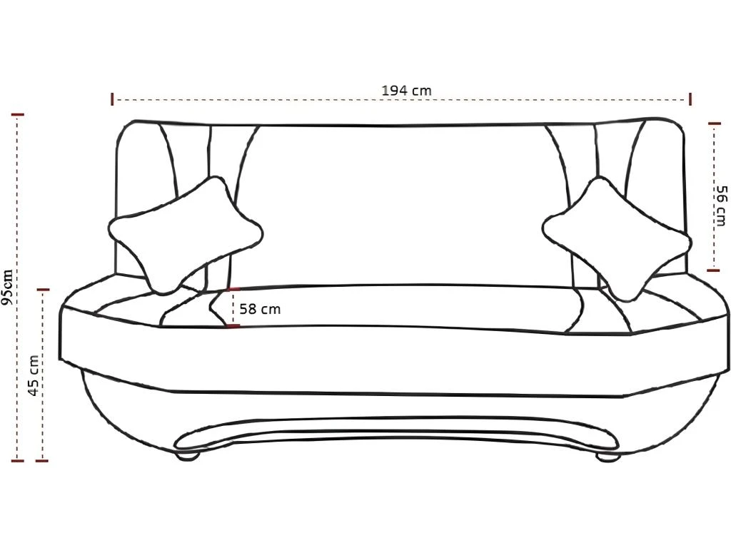 Son design original et sa fonctionnalité se traduisent par un confort d’utilisation. Les dimensions de 194x100x95 cm offrent beaucoup d’espace pour se détendre. La fonction de dépliage vous permet d’ajuster l’espace couchage pour dormir. Après avoir déplié la fonction couchage, vous bénéficiez d’un espace de 194x125cm. Le système de dépliage intuitif et simple « clic-clac » habituellement utilisé dans les canapés-lits permet de transformer le canapé en un lit confortable en un rien de temps. Le canapé a un coffre de rangement. Le choix pour un repos confortable. Rembourrage de l’assise en ressort bonnell et mousse T25, disponible à la fois sur l’assise et sur le dossier.