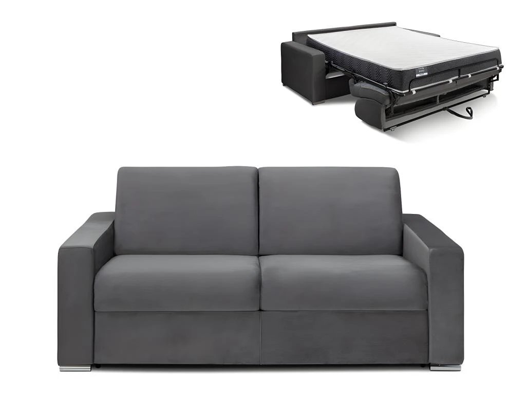 Vous souhaitez ajouter une touche d’élégance et de raffinement à votre intérieur ? Optez pour le canapé convertible en velours CALITO, confortable et esthétique qui saura sublimer votre intérieur. Le revêtement en velours confère au canapé une sensation de douceur et de luxe. Idéal pour accueillir des invités de manière spontanée ou pour créer un espace de repos supplémentaire en quelques instants, vous pourrez transformer ce canapé en lit en un clin d’œil. Les accoudoirs larges et moelleux ajoutent une dimension de confort supplémentaire à votre expérience de détente. Disponible en plusieurs largeurs pour s’adapter parfaitement à la taille de votre salon, ce canapé est également proposé avec différentes épaisseurs de matelas pour répondre à vos préférences en termes de fermeté.