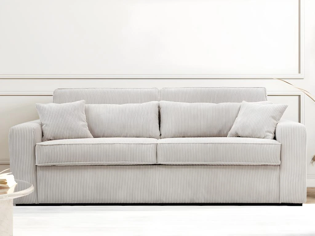 Vous cherchez à ajouter une touche de vintage élégant à votre espace tout en vous offrant un confort supplémentaire? Découvrez MONDOVI, le canapé convertible express en tissu couleur crème. En un rien de temps, ce canapé se transforme en un lit confortable pour vous et vos invités. Les coussins additionnels inclus assurent un confort moelleux, faisant de MONDOVI le choix idéal pour allier style et fonctionnalité. Comment ne pas craquer pour ce mélange parfait de vintage et de modernité ?