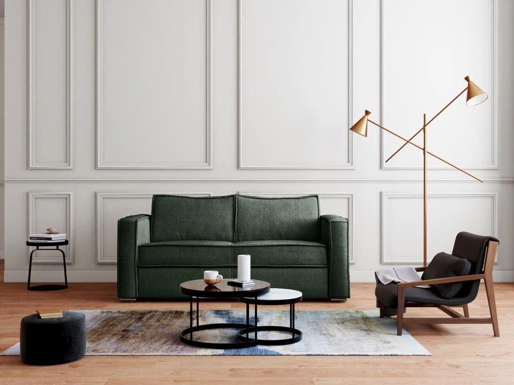 Vous souhaitez un canapé convertible qui donnera du charme à votre intérieur ? Adoptez le canapé LORETO. Avec son revêtement en velours côtelé, le canapé convertible express LORETO vous comblera de douceur et de confort. Ce canapé propose un style qui invite au repos. Son assise profonde et moelleuse saura vous accueillir pour vos moments de détente. Avec son mécanisme convertible express, il se transformera en un lit en quelques secondes seulement et conviendra pour un couchage quotidien.