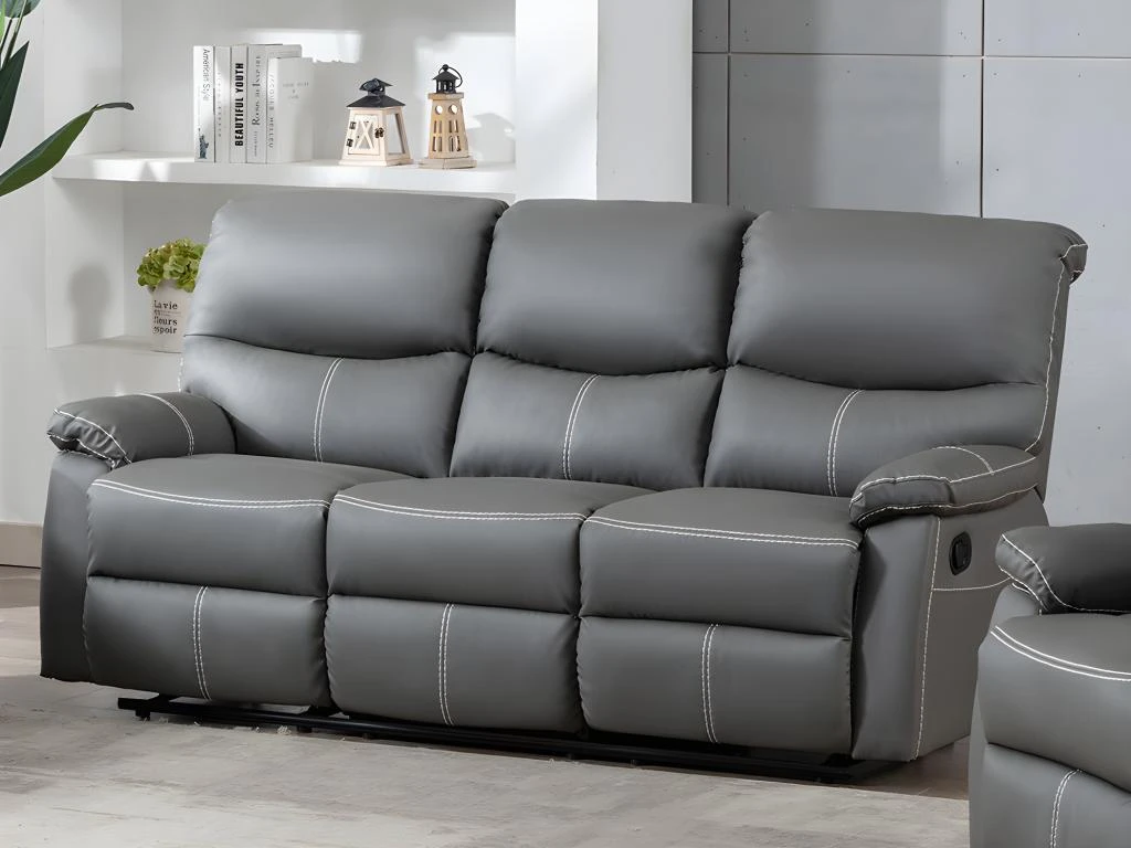 Envie de vous relaxer depuis chez vous ? Les canapés et fauteuil CANBY vous permettront de passer d’agréables moments de détente dès que vous le souhaitez. Dotés d’un mécanisme de relaxation manuel, vous pourrez choisir votre position idéale parmi 5 positions d’inclinaison possibles pour être installé confortablement. Classiques et intemporels, ils possèdent des surpiqûres contrastantes qui leur donnent ainsi une touche déco.