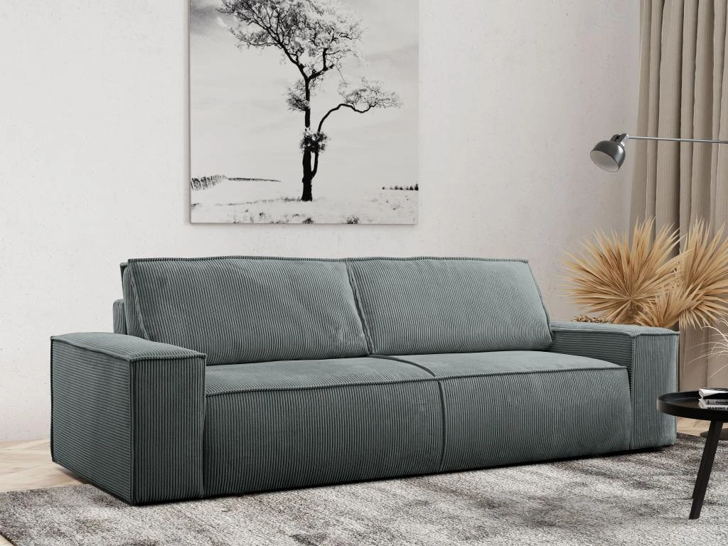 Le canapé convertible ou le fauteuil AMELIA en velours côtelé sont les pièces qui viendront sublimer votre salon grâce à sa matière douce et élégante. Le canapé convertible est aussi très fonctionnel : convertible et pratique, vous pourrez le transformer en un couchage supplémentaire très rapidement et aussi ranger vos affaires dans le coffre sous l’assise.