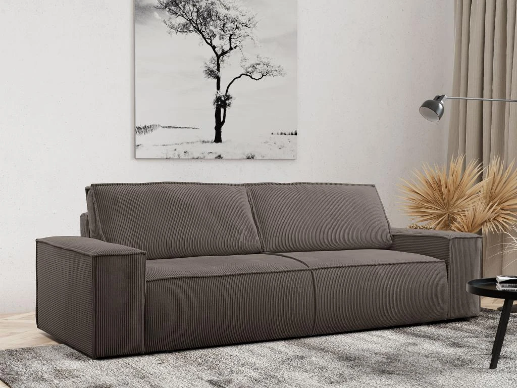 Le canapé convertible ou le fauteuil AMELIA en velours côtelé sont les pièces qui viendront sublimer votre salon grâce à sa matière douce et élégante. Le canapé convertible est aussi très fonctionnel : convertible et pratique, vous pourrez le transformer en un couchage supplémentaire très rapidement et aussi ranger vos affaires dans le coffre sous l’assise.