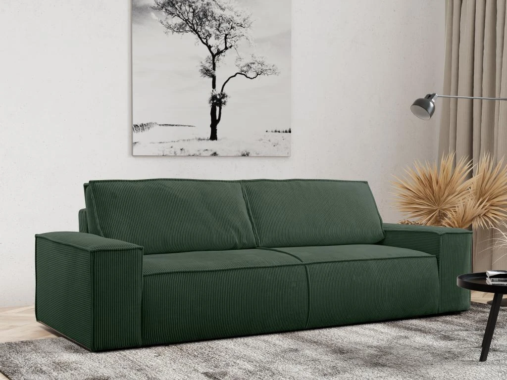 Le canapé convertible ou le fauteuil AMELIA en velours côtelé sont les pièces qui viendront sublimer votre salon grâce à sa matière douce et élégante. Le canapé convertible est aussi très fonctionnel : convertible et pratique, vous pourrez le transformer en un couchage supplémentaire très rapidement et aussi ranger vos affaires dans le coffre sous l’assise.