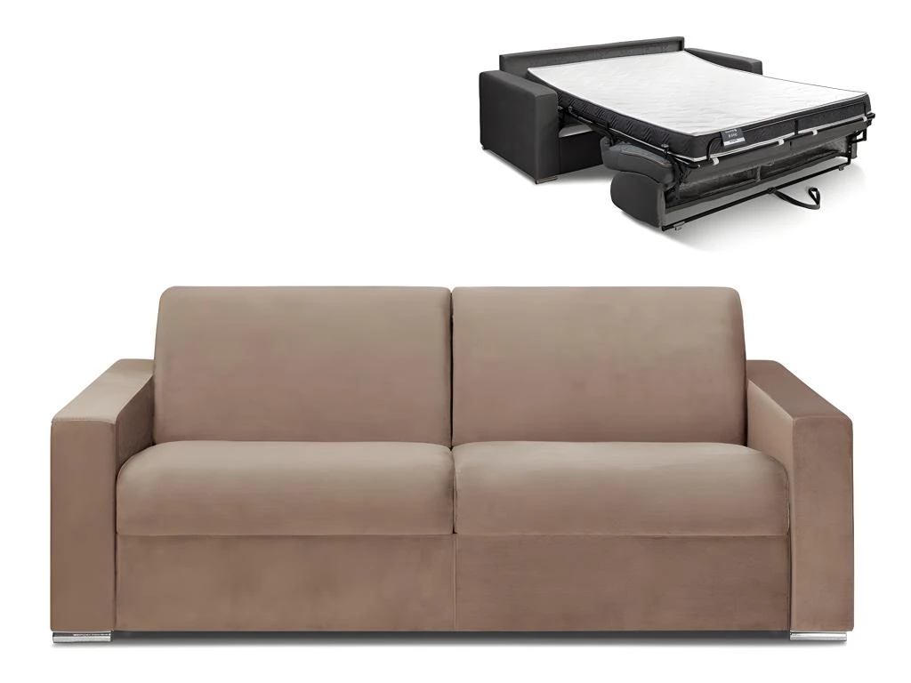 Vous souhaitez ajouter une touche d’élégance et de raffinement à votre intérieur ? Optez pour le canapé convertible en velours CALITO, confortable et esthétique qui saura sublimer votre intérieur. Le revêtement en velours confère au canapé une sensation de douceur et de luxe. Idéal pour accueillir des invités de manière spontanée ou pour créer un espace de repos supplémentaire en quelques instants, vous pourrez transformer ce canapé en lit en un clin d’œil. Les accoudoirs larges et moelleux ajoutent une dimension de confort supplémentaire à votre expérience de détente. Disponible en plusieurs largeurs pour s’adapter parfaitement à la taille de votre salon, ce canapé est également proposé avec différentes épaisseurs de matelas pour répondre à vos préférences en termes de fermeté.