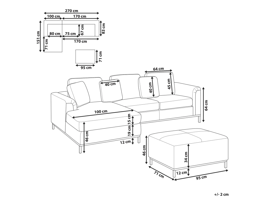 L`offre inclue: 1 x Canapé d’angle, 1 x Ottoman, 3 x Oreiller
