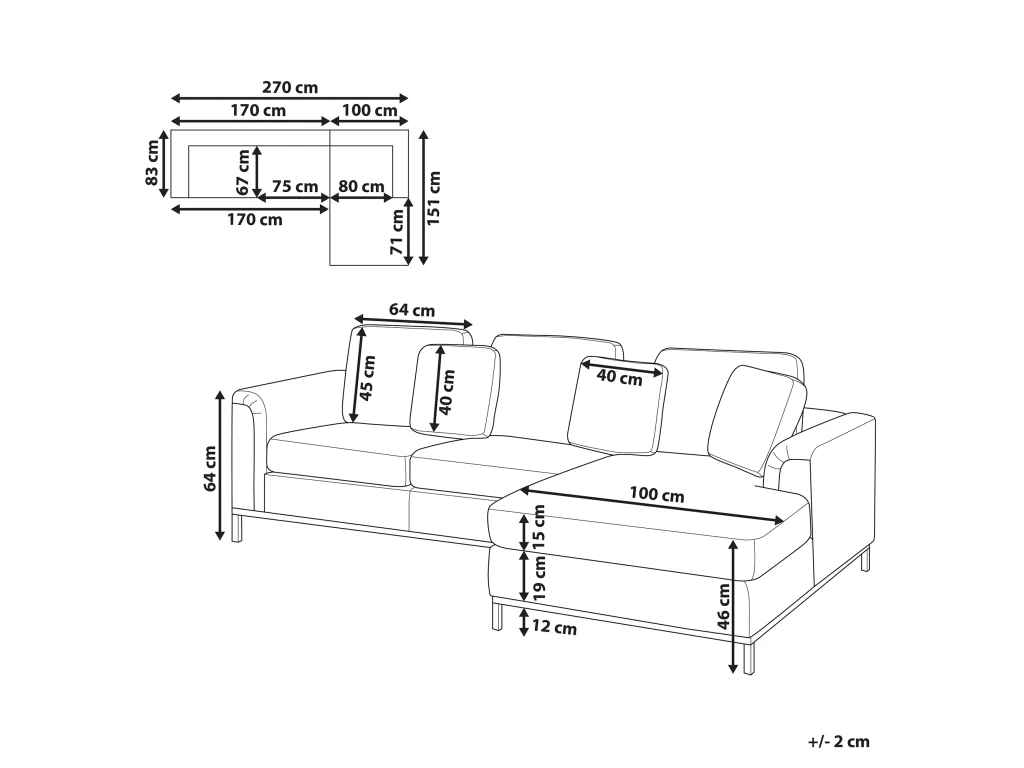 L`offre inclue: 1 x Canapé d’angle, 3 x Oreiller