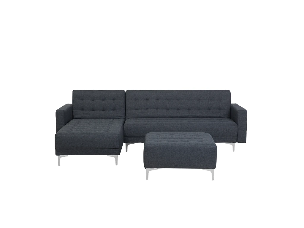 Canapé Angle Droite Convertible En Tissu Gris Foncé 4 Places Avec Pouf ABERDEEN