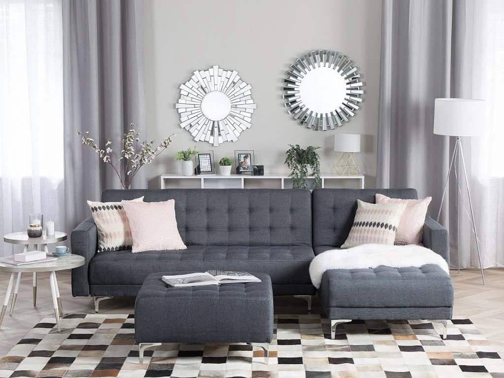 Canapé Angle Gauche Convertible En Tissu Gris Foncé 4 Places ABERDEEN