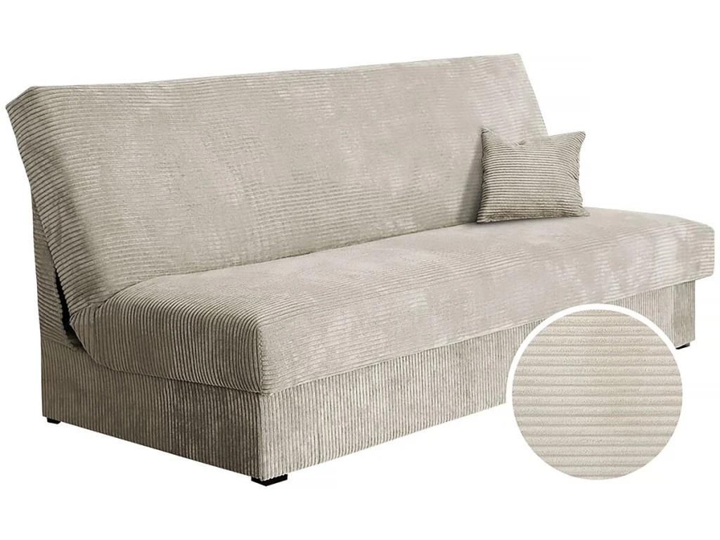 Descriptif : Canapé Clic clac en velours côtelé Adela – 175 x 80 x 80 cm – Beige.