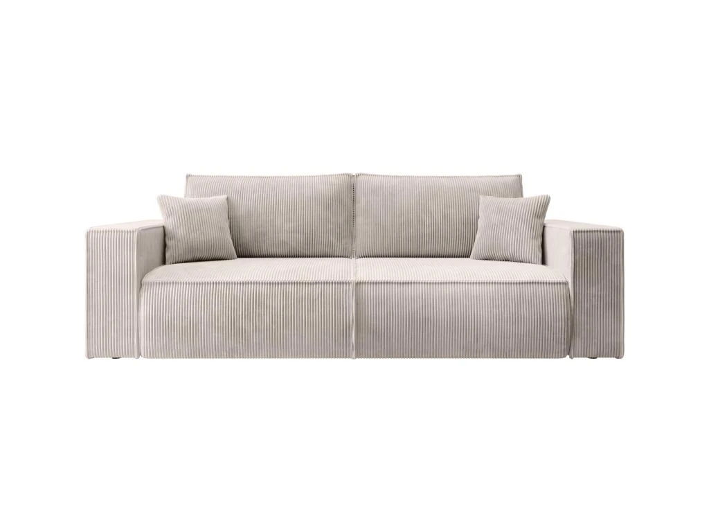 Le canapé trois places Farese est une proposition créée spécialement pour des utilisateurs aussi exigeants que vous! Ce meuble charmant est recouvert de l’extraordinaire tissu Poso, dont la surface douce et agréable au toucher est décorée de rayures épaisses. Le produit attirera donc efficacement le regard de vos invités, suscitant leur intérêt, tout en restant extrêmement agréable au quotidien. Le matériau utilisé résiste également bien aux frottements et à l’abrasion, ce qui lui permet de conserver longtemps son aspect impeccable. Farese est équipé d’un siège rempli de ressorts ondulés et de mousse de polyuréthane flexible T-3040. L’élément, associé au support de granulés de mousse, enveloppera doucement le corps de l’utilisateur, soutenant correctement les points sensibles de sa colonne vertébrale. De cette façon, même quelques heures passées à regarder votre série préférée ou un après-midi de déjeuner avec un ami ne se termineront pas par une douleur lancinante pour vous. Cependant, ce n’est pas la fin des avantages de notre canapé – il peut également se vanter d’un mécanisme de support de déploiement intelligent facile à utiliser. Cela signifie que vous pouvez le transformer rapidement et efficacement en un lit confortable, où les invités pour la nuit se reposeront correctement. Le tout est complété par un bac à literie spacieux pour ranger les textiles ou les petits objets moins fréquemment utilisés.