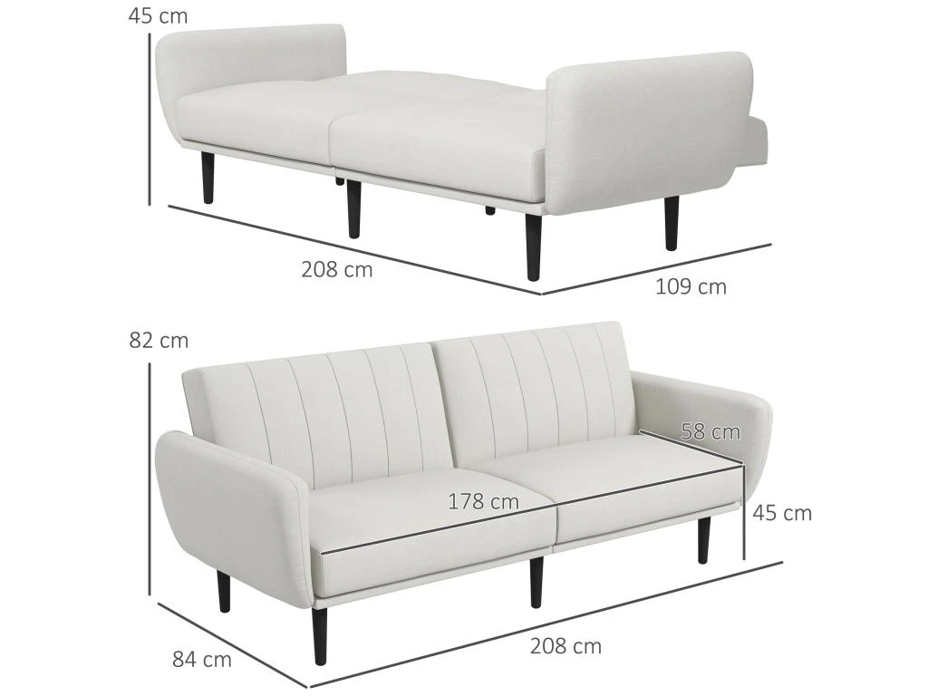 – Dim. totales canapé (position assis droit) : 208L x 84P x 82H cm
