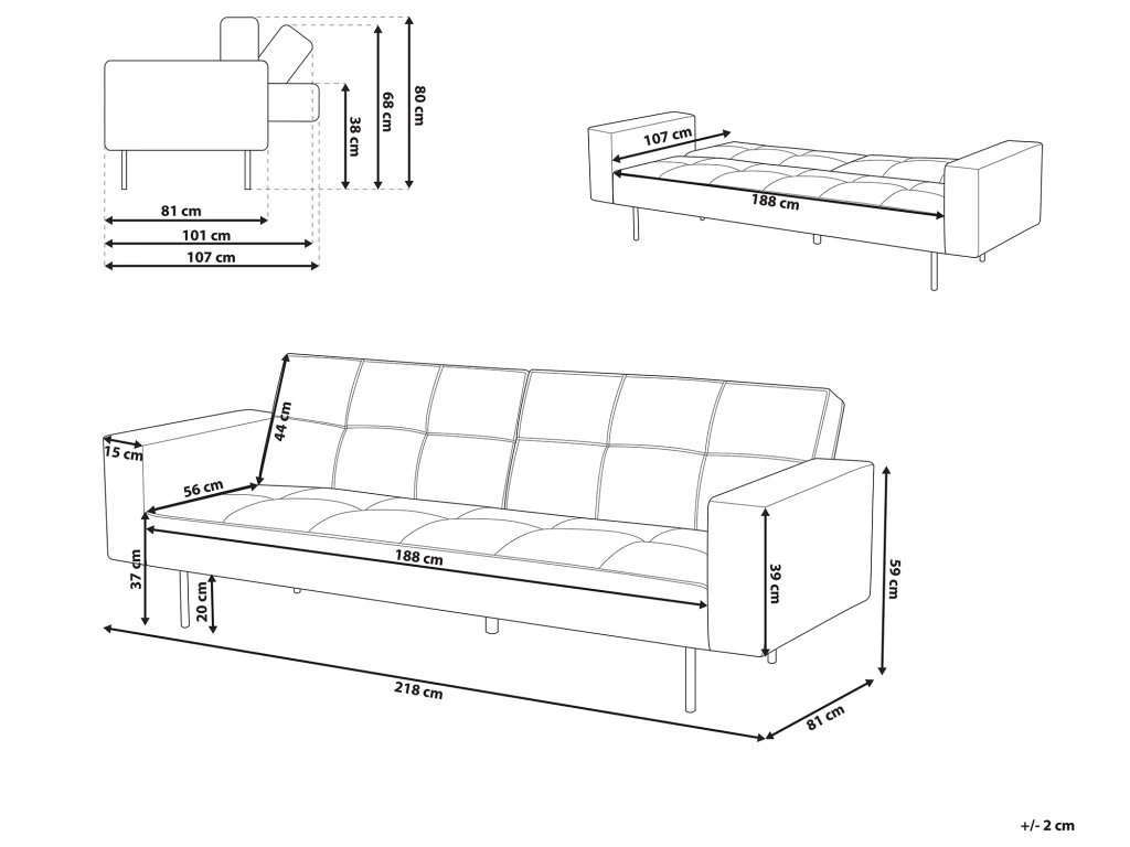 Caractéristiques clés: Facilement convertible en un canapé-lit, Style élégant, Tissu soyeux et velouté, De haute qualité, Entièrement rembourré sur tous les côtés