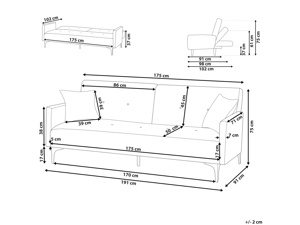 Caractéristiques clés: Facilement convertible en un canapé-lit, Dossier réglable en 3 positions, Style traditionnel avec une touche moderne, Rembourrage de qualité supérieure, Taies déhoussables et lavables, Patins pour le pieds assurent la protection contre les rayures