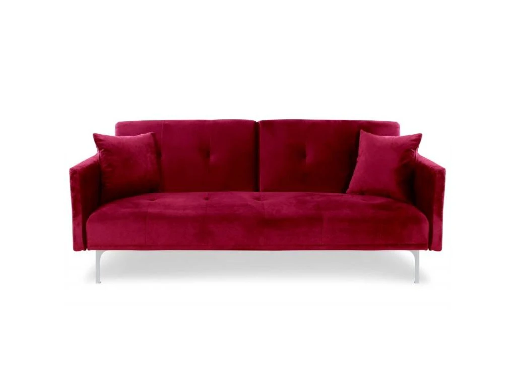 Le canapé CARLA est un beau canapé au revêtement de velours ultra doux et confortable. Ses pieds en métal lui donnent une allure élégante et raffinée s’alliant parfaitement avec le côté tendance et chaleureux du velours. Le dossier de ce canapé-lit est en deux parties. Vous pouvez ainsi choisir de ne rabaisser qu’un côté du dossier pour y allonger un enfant par exemple. N’hésitez plus et adoptez ce canapé clic-clac moderne qui s’intégrera dans tous les intérieurs contemporains.