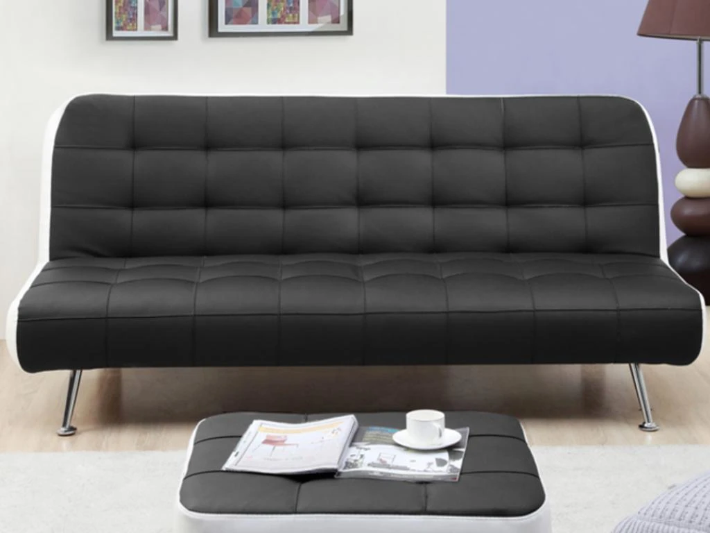 Vous souhaitez transformer votre salon en un espace où le confort et le style se rencontrent harmonieusement ? Optez pour le canapé convertible clic-clac et le pouf en simili MURNI. Le revêtement en simili confère au canapé un aspect luxueux et moderne et ajoute une touche d’élégance à votre intérieur tout en étant facile à entretenir.