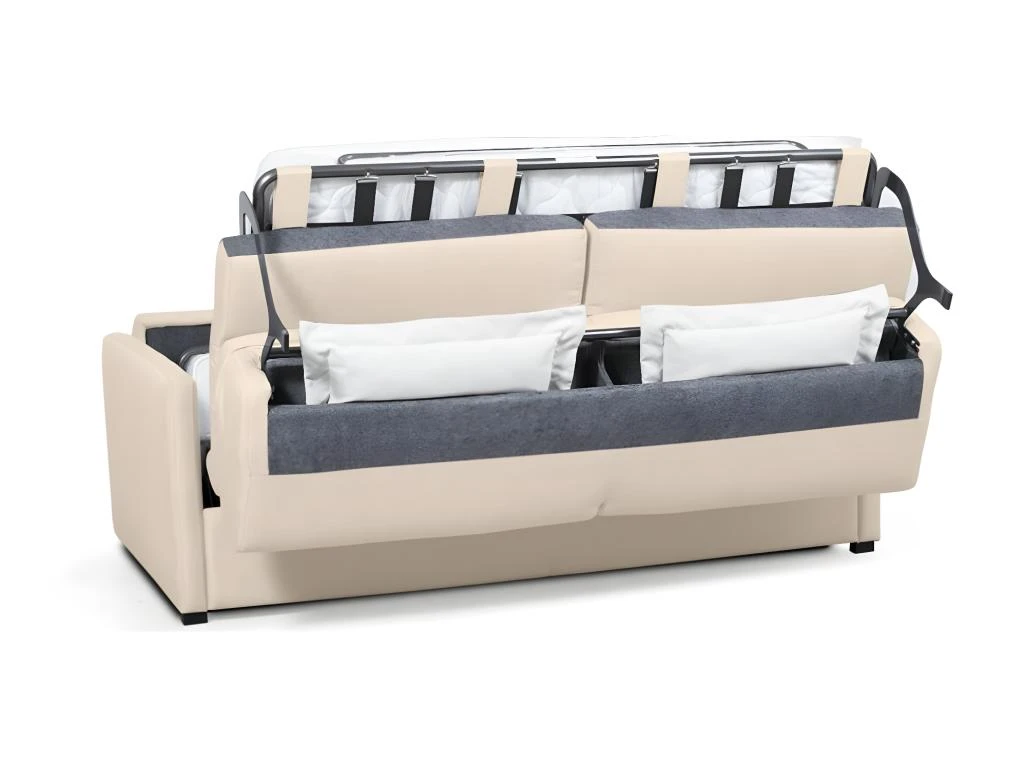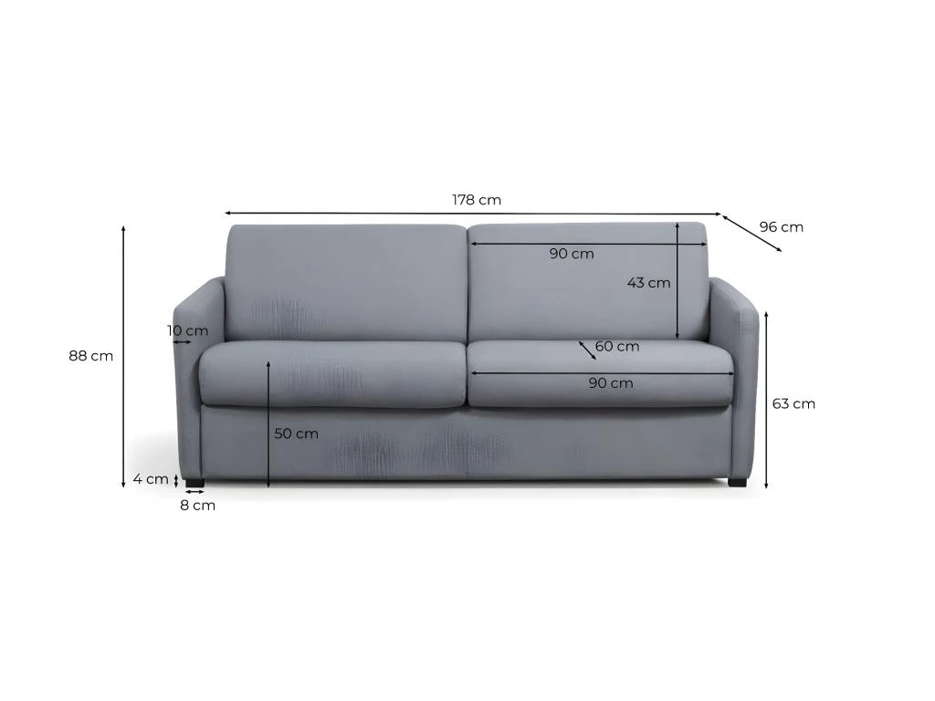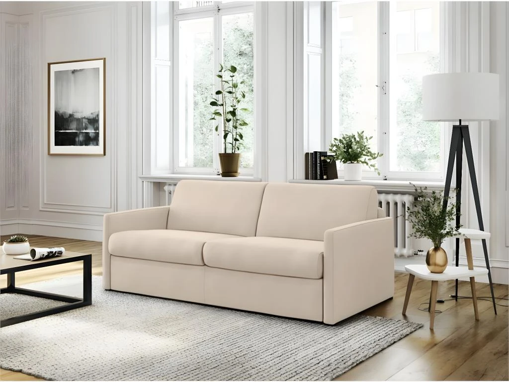 Optez pour notre canapé convertible système couchage express 3 places en tissu 140 cm Alice qui se mariera parfaitement à votre salon ! Deux en un, ce canapé se transforme en un rien de temps en couchage selon vos besoins. De plus, ses dimensions compactes lui permettent d’optimiser votre espace au sein de votre pièce.