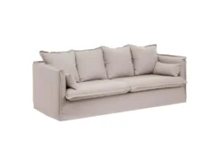 Canapé 2 Places Convertible En Tissu BALEA Avec Table D’appoint Intégrée – Beige Et Gris
