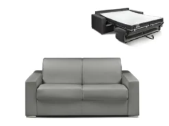 Canapé 2 Places Convertible Express En Simili CALIFE – Taupe – Couchage 120 Cm – Matelas 14 Cm