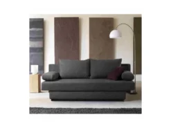 Banquette Convertible PIRY 3 Places – Tissu Gris – Classique – L 187 X P 88 Cm