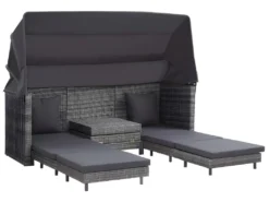 Canapé-lit Extensible 3 Places Avec Toit Résine Tressée Gris
