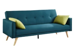 Canapé 3 Places Convertible En Tissu DARVEL – Bleu Canard Et Coussins Vert Pomme
