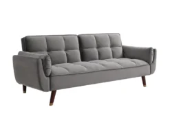 Canapé 3 Places Convertible Clic-clac En Velours Gris ZAPOTO