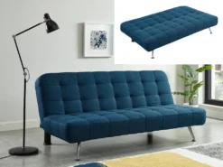Ensemble Canapé Clic Clac MISHAN Bleu Avec Couette 220 X 240 Et 2 Oreillers