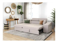 Canapé D’Angle ELONA Convertible En Tissu – Beige – Angle Gauche