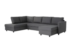 JAMES Canapé D’angle Panoramique Convertible 5 Places – Tissu Anthracite – L 298 X P 142 X H 85 Cm