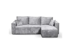 Canapé D’angle Réversible Convertible 3 Places Coffre Romain Velours Beige