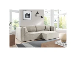 Canapé D’angle Réversible Convertible 4 Places Coffre Valentin Bouclé Beige
