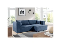 Canapé D’angle Réversible Convertible 3 Places Jimmy Velours Côtelé Bleu