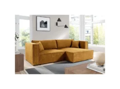 Canapé D’angle Réversible Convertible 3 Places Jimmy Velours Côtelé Jaune