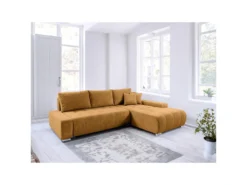 Canapé D’angle Convertible Droit 4 Places Coffre Jonas Velours Côtelé Jaune