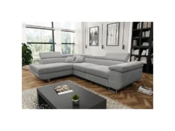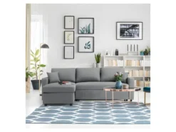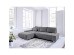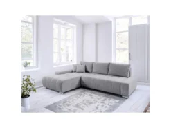 Canapé D’angle Convertible Gauche 4 Places Coffre Jonas Velours Côtelé Gris