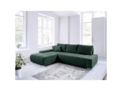 Canapé D’angle Convertible Gauche 4 Places Coffre Jonas Velours Côtelé Vert Sapin